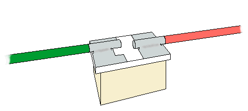 Figure 3, we refer to as "side wiring". An example of this is the 3 Nano red LEDs we wired for the grade crossing gate mentioned above. In this application the gate is a brass casting and the top edge (where the lamp-like castings were) is quite rough. After removing the castings we had to file and sand the surface to smoothen it for LED mounting. Because the brass is conductive and the manufacturer used common-anode wiring in construction. The whole assembly (crossbuck, gate, etc.) must be considered "hot". That is, the plus DC connection is wired to the casting frame and can easily conduct through to the gate arm also. To protect the LEDs from shorting on the gate. We cut 3 small squares of .005" styrene and glued (CA) them to the top of the gate arm. We then glued the wired LEDs to the styrene squares, and finally routed and glued the wires along the back side of the gate. A little touch-up paint and the wires basically disappeared.