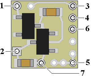 The N8081 is designed to alternately light 2 series-pairs of LEDs, (1 red & 1 blue in each pair) to simulate the emergency lights on the front & rear of police motorcycle, circa 1950’s. Solder points 3,4 & 5 drive these LEDs. An additional output is provided for a white LED for a headlight at points 6 & 7.