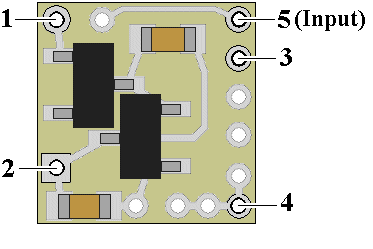 Using wire appropriate for the size of the LED and its placement in your project, connect the LED cathode (the – connection) to point #3 on the module and connect the LED anode (the +) to solder point #4.