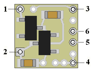 Figure 2 There is one operational difference between these two versions. With the original (non-rev. A) version ,when power is applied to either the N8040 or N8040A, the output connections for LED hookup (solder points 3 & 4) are by default, turned off. To turn on the FRED function, requires connecting solder point #5 (either momentarily or permanently) to -DC (ground). This version incorporated a special "latching" feature to turn on and off the FRED function and LED output. With power applied to the module, each time solder point #5 is grounded the FRED function alternately starts or stops. If #5 is connected to a push-button switch or a reed (magnetically activated) switch, the FRED can easily be turned off. Solder point #6 (next to point 5) is configured as a -DC (ground) for easy circuit connection. With the newer Revision A version, this feature has been removed. Now, whenever power is applied to the Simulator, the FRED function is active. We found that the earlier "feature" caused some confusion by giving some users problems when running on battery power. The latching feature did turn off the LED output reducing the majority of power drain, but the tiny "trickle" required by the Simulator's microcontroller was still a gradual drain over time. This would eventually drain battery power.