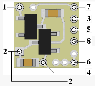 Figure 1 Important note: A low-wattage iron with a pointed tip should be used for connection of wires. Too much heat or solder can easily damage the wires or module and void the warranty. Also, all connecting wires should be pre-tinned before soldering them to the module. This will make connection quick and easy and ensure excessive heat is not applied to the solder points. Solder point #2 is the -DC (or ground) power connection.