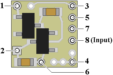 Input control By default, the primary LED connected to this module will produce a beacon effect. If it is preferable that it produce a strobe flash, with a 3-second delay between flashes, connect solder point 8 to DC – (or connect a wire between solder point 2 and 8). This will change the default to strobe.