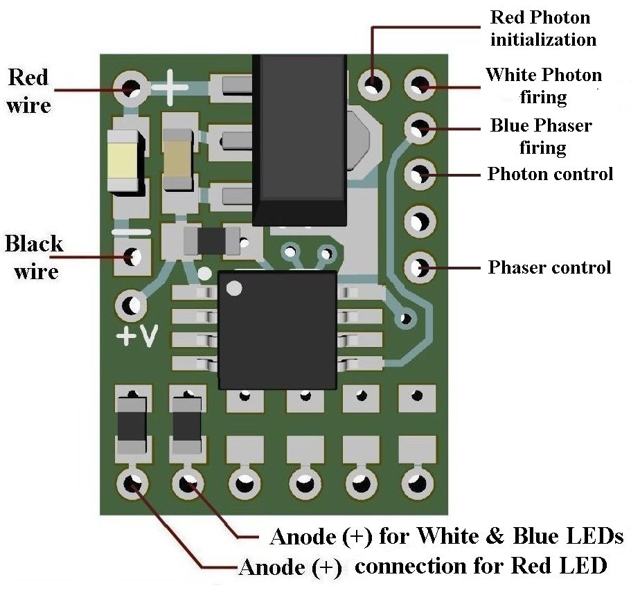 Product & installation overview: The N8110-12 is programmed to realistically simulate the visual effects of Star Trek Starships of the Original Series (TOS), Photon Torpedo initialization (red LED) and firing sequence (white LED), and (blue LED) Phaser firing. There are separate input controls to fire each weapon. This module is not designed for use with (filament) type bulbs. NOTE: DO NOT fire BOTH weapons at the SAME TIME.