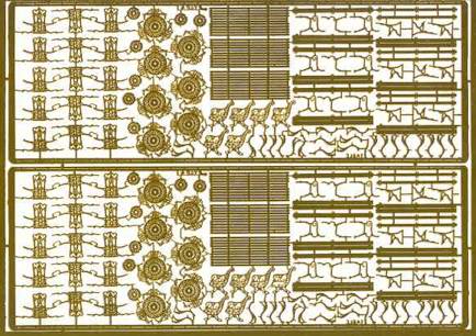 Also on this fret are numerous weather vanes complete with distinctive decoration (cat, rooster, sunburst, etc.), various ornate sign boards for storefronts, cafes or pubs, and... several wrought-iron style plant or sign hangers. There is an amazing amount of incredibly detailed N-Scale hardware on this fret. Our pictures don't do it justice, and... there's 2 sets of everything!