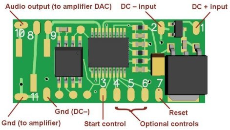 Relatively speaking, our sound modules are fairly small at 1-3/8" x 5/8". The tiny gold-plated solder pads to which wires (Included in package) need to be attached are approximately 1/16" wide by less that 1/8" long. Two of these pads (DC+ input & Start control Pad #3) are very sensitive to excessive heat during the soldering process.