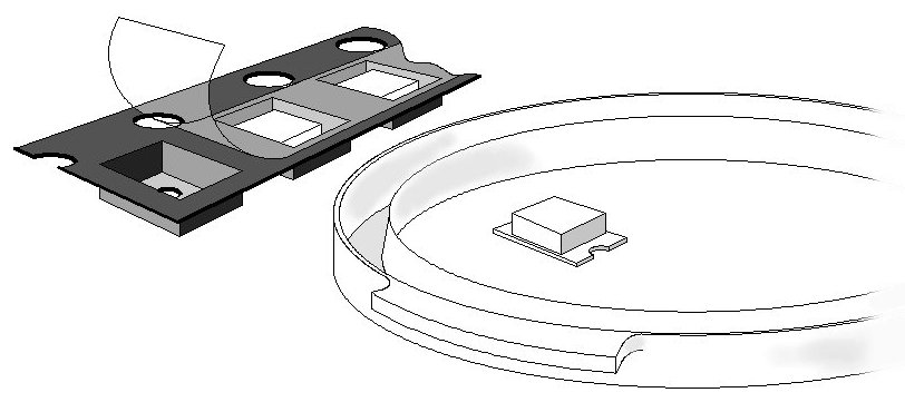 We recommend only exposing as many pockets as are needed for the parts currently to be worked with. Simply tip the carrier and the part(s) will fall out. Some parts are extremely small and can be easily misplaced. For example, our Nano LED can easily hide under the end of your fingernail! Be sure to use good lighting and a clear working area when opening the protective carriers. We have found it best to tip the opened carrier strip over a small receptacle to catch the parts, rather than placing them directly on the workbench surface. An ideal receptacle is a white plastic pill bottle cover turned upside down. It is soft plastic so it cannot damage parts, it has a raised edge or lip to retain parts, and it is bright white so parts are very easy to see. Also, they're readily available... and cheap!