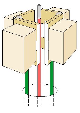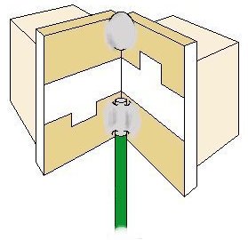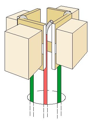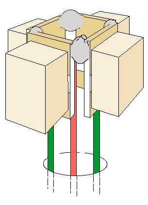 Figure 6 Figure 7 below, shows this wire is soldered joining itself and the top 2 adjacent solder pads of the 2 adjacent sub-assemblies. An additional solder joint connects the oposite 2 adjacent top solder pads as shown. Now this center (common) wire has been electrical joined with all 4 top solder pads on all 4 LEDs. This completes the connection for the 4-LED beacon assembly and it can carefully removed from the holding fixture and tested. Using an LED tester (such as our N8021), connect the common and one of the other wires to the tester. One of the LEDs should light. Switch the wires on the tester and the other LED of the pair should light. Repeat this procedure with the common wire and the other wire and the other 2 LEDs should each light. Once testing is complete the beacon can be mounted in your model and wired to the N8042C Simulator module. The common wire is connected in series with a resistor (included in the Simulator package with a spare) to solder point 4. The other wires are connected to points 3 & 5.