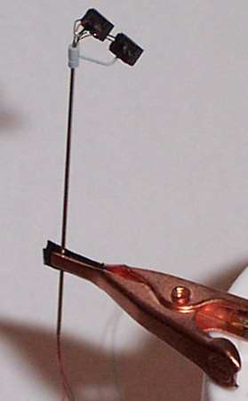 Here are a couple of photos of the .018" tube being used for a support pole for a portable floodlight generator like the kind you see at construction sites (photo of unfinished model below). As you can see four #38 magnet wires fit easily inside the tube.
