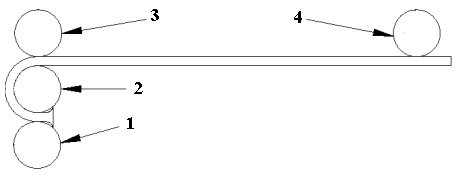 Note that the flared end of the tubing is aligned with the bottom edge of the pin #2. A line could be scratched in the fixture surface to assist in alignment as well. All pins are .093" dowels. The first two pins can be a left in the fixture as they will not need to be removed. Pins 3 & 4 are a slip fit in the fixture and they will be inserted as stated below.
